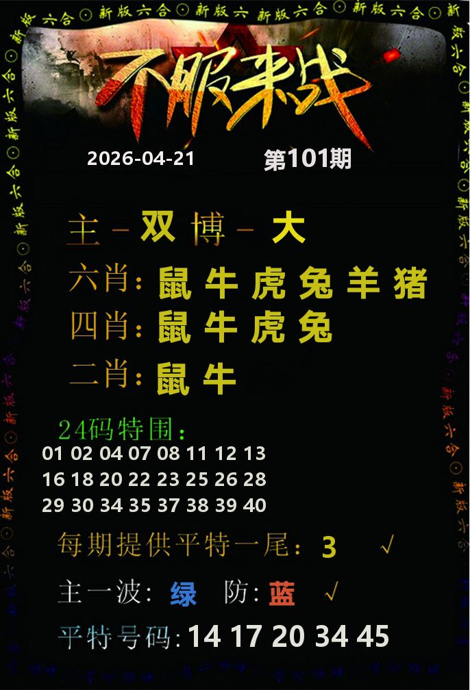 098期:A级大公开:676383.COM长跟必赢 098期四肖:【蛇兔牛猴】 八码:【14 26 28 40 18 42 23 35】 098期三肖:【蛇兔牛】 六码:【14 26 28 40 18 42】 098期二肖:【蛇兔】 四码:【14 26 28 40】 098期:一肖一码【蛇14】信心十足,大胆下注!